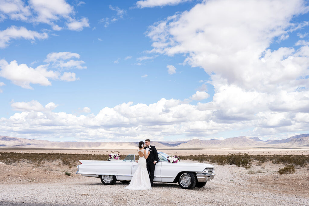 Getting around Las Vegas on your wedding day doesn’t have to be an afterthought — it can actually be one of the most fun parts of the day. Renting a car is a practical choice if you’re heading to outdoor locations like Red Rock Canyon or the Dry Lake Beds, but it’s also a great opportunity to add some personality to your celebration.