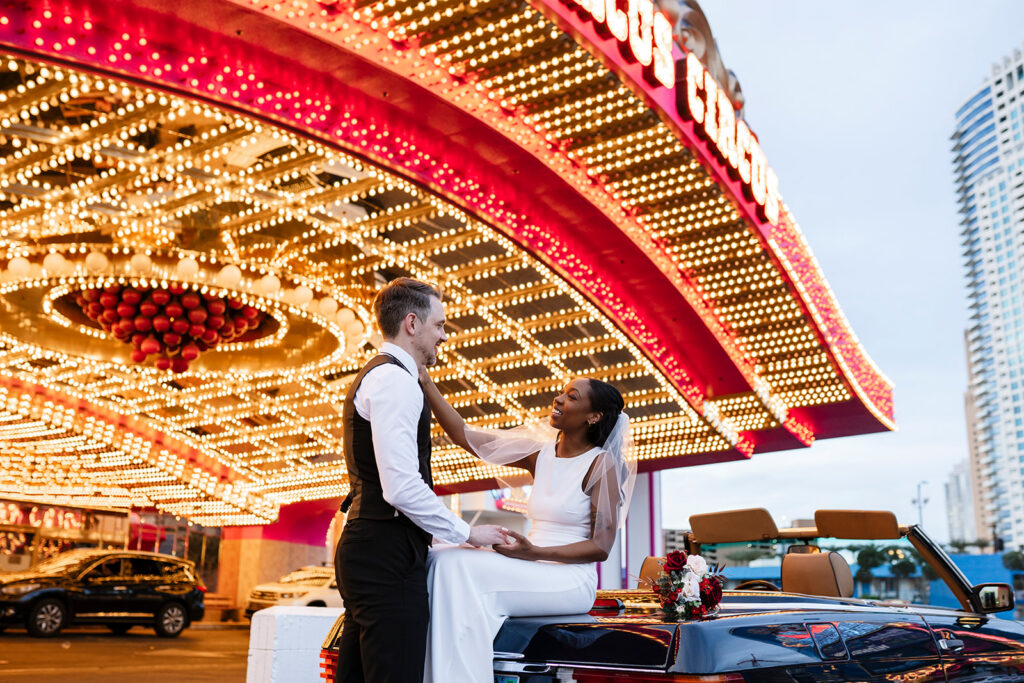 One option I love recommending is XO Classic Cars. Renting a vintage or classic car is a genuinely fun way to get around the city, and it doubles as a built-in photo opportunity. Pulling up to your ceremony or cruising down the Strip in a beautifully restored classic is the kind of detail that makes your wedding day feel extra special — and it photographs beautifully.